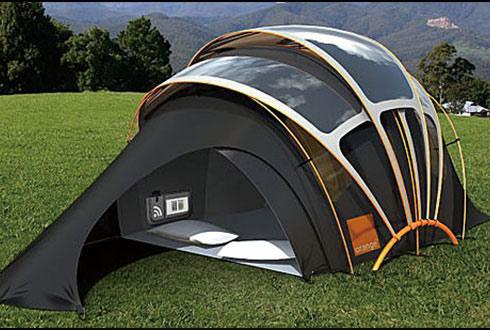 近年來,帳篷設計潮流越發趨向綠色環保。這款帳篷設計前衛,裝有WiFi鏈接裝置、太陽能電池板和照明系統。