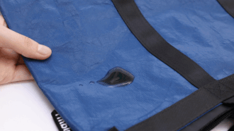 因為它的主要面料是“杜邦紙”,外面還附了一層防水的PU膜涂層。
